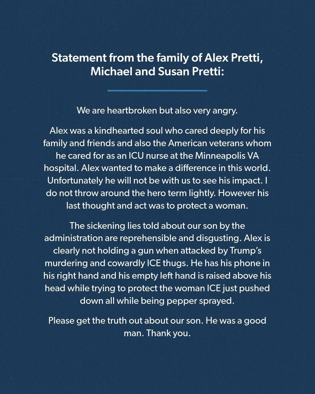 Some news outlets and the administration are lying about what’s happened in Minneapolis - a lovely city I’ve had the good fortune to visit a few times. And I stand for truth.